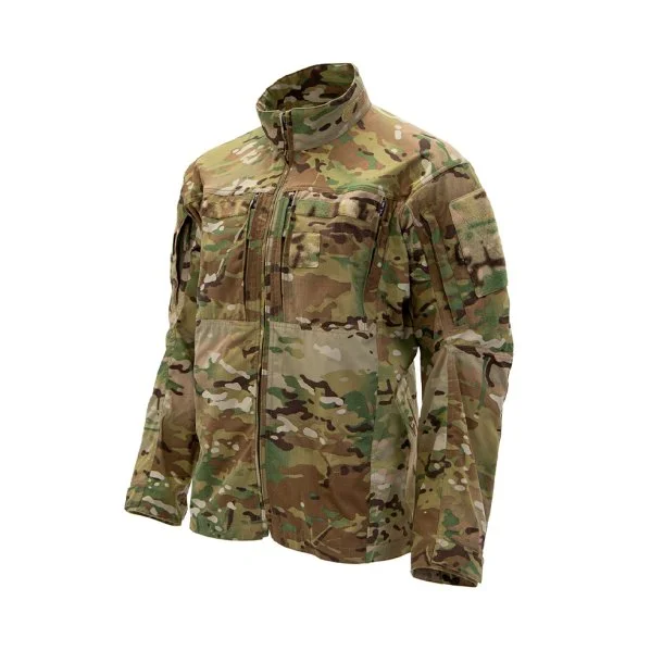 Combat Jakke MultiCam, Normal Længde fra Carinthia er en stabil og velsiddende jakke i en moderne materialeblanding til brug i felten. Jakken er udviklet i forarbejdet stretchmateriale i yderstoffet, som giver dig maksimal bevægelsesfrihed. Jakken er hertil designet med en stabil stand-up krave, hvor du nemt og hurtigt kan fastgøre Carinthia – Combat Hætte. Ydermere er jakken designet med forformet ærmekonstruktion, som øger komforten og giver god mulighed for hurtig bevægelse.