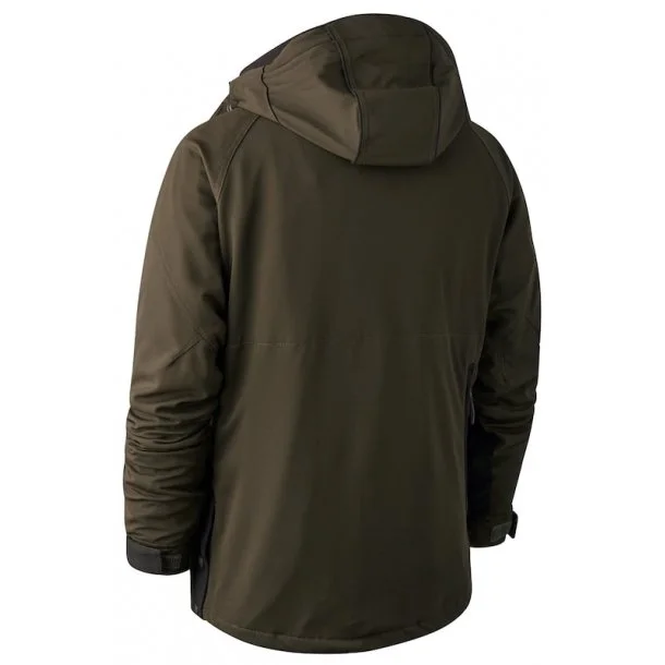Muflonjagtjakken fra Deerhunter er vind- og vandtæt takket være tapede søm og den åndbare Deer-Tex membran, som ligger løst mellem de forskellige lag. Deer-Tex membranet er et materiale, som hjælper på vandtætheden på bl.a. jakker, som f.eks. denne Muflon jakke. Denne membran – sammen med jakkens isolering – holder dig varm ved stillestående jagt. Membranen er især en rigtig god tilføjelse til tøj, hvor lydløshed er en vigtig fordel, som f.eks. til pürsch- og buejagt. Jakken har mange fede detaljer som aftagelig hætte, tovejs-lynlås, forstærkninger i ruskind og mange lommer til opbevaring af f.eks. telefon og nøgler.