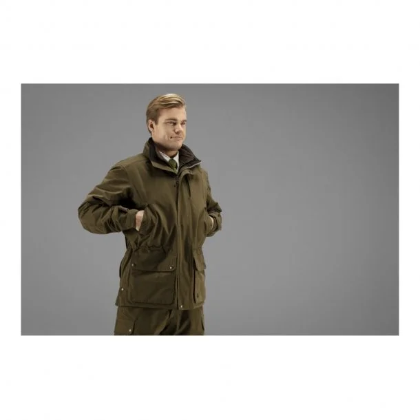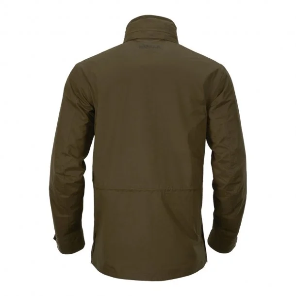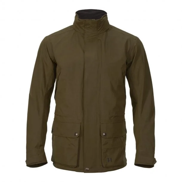Retrieve Jakke fra Härkila i et traditionelt snit er fremstillet i en slidstærk bomuldsblanding med et klassisk ternet for indeni. Jakken er foret med en let, hurtigtørrende og fugttransporterende Thermo Poly Shield™-foring. Retrieve Jakke fra Härkila har en Härkila Weather System-membran (HWS), som gør jakken vandtæt og jakken er udstyret med en høj krave med fløjlsforing samt en skjult hætte, som nemt kan foldes ud og pakkes ind igen i skiftende vejr. Retrieve Jakke fra Härkila har gode lommer, justerbare manchetter, stormcuffs, og jakken kan justeres i livet og bunden samt en 2-vejs-lynlås dækket af en stormflap.