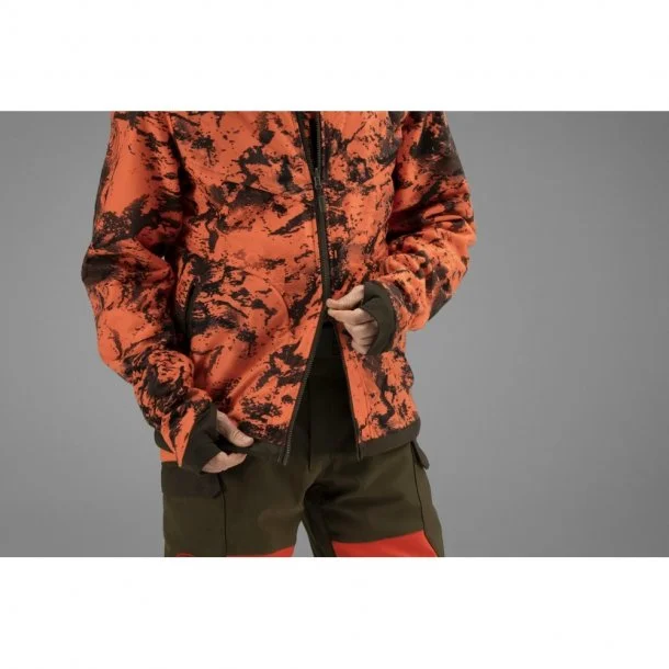 Wildboar Pro Fleece fra Härkila er en vendbar fleecejakke med camouflage på den ene side og en grøn farve på den anden, som gør jakken ideel til flere forskellige jagtsituationer. Du kan nemt anvende jakken som et varmt mellemlag, eller som et yderlag på varmere dage. Fleecejakken er udstyret med to brystlommer, hvor der er plads til walkie-talkie eller en mobiltelefon, en høj krave, 2-vejs-lynlås og strækbare manchetter med tommelfingerhuller, der er justerbar i bunden. Jakken er produceret i blødt og strækbart microfleece-stof, og sikrer 100% vindtæthed og høj åndbarhed med den anerkendte anvendte teknologi, GORE WINDSTOPPER ®.