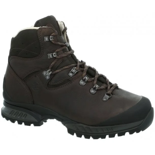 De populære Lhasa Wide støvler fra Hanwag er blevet forbedret på flere områder, så de nu er nemmere at spænde. Pløsen er justeret for ikke at falde ned undervejs på vandreturen, og så har de fået en ny indlægssål. Det betyder, at sålen nu transporterer sved bedre ved hjælp af et mellemlag af kork. Hanwag lhasa er produceret i både smidigt og blødt læder fra yakokser og har ydermere huller til god ventilation. Derudover er sålen lavet af et specielt materiale, som giver en bremse-lignende støtte, når det går ned ad bakke. Disse Hanwag lhasa støvler giver en eminent komfort og støtte til dine fødder på de lange dage i det fri på grund af den ekstra brede forfod.