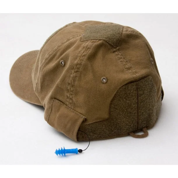CG-Hat DLUX fra Mil-Spec Monkey er en FlexFit kasket med velcroplatforme og høreværn i begge sider. Der er mulighed for at sætte velcromærker foran, på toppen og bagpå. Retracto Plugs høreværnene er nemme at få fat i, mens de samtidig også er gemt, så de er beskyttede på tidspunkt, hvor de ikke er i brug.