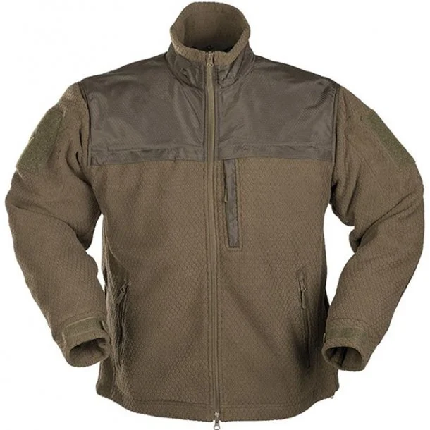 Varm og tyk fleecejakke med heksagonal mønster. Mulighed for at påsætte patches på øverste del af arme. Jakken har to skjulte brystlommer, en dokumentholder i lommen og rig mulighed for at opbevare grej.