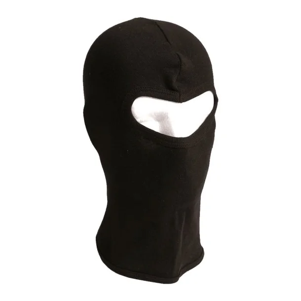 One-Hole Fine-Ribbed Balaclava Sort fra Mil-Tec er en tynd balaclava fremstillet i 100% bomuld, som er designet med ét hul – kun til øjnene.
