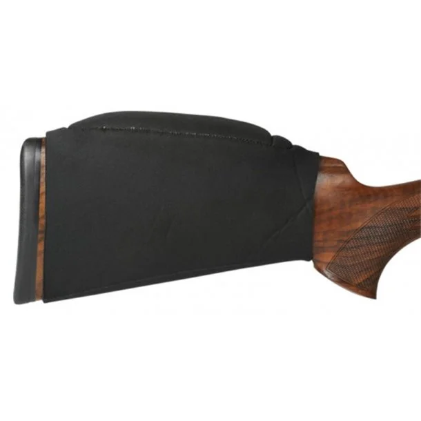 Kolbeforhøjer i 3 mm strækbart neopren med laminerede syninger for ekstra holdbarhed. Kolbeforhøjeren har udover den i forvejen indsyede forhøjning, tre højdeindsatser. Den kan samtidig også bruges af links skytter.