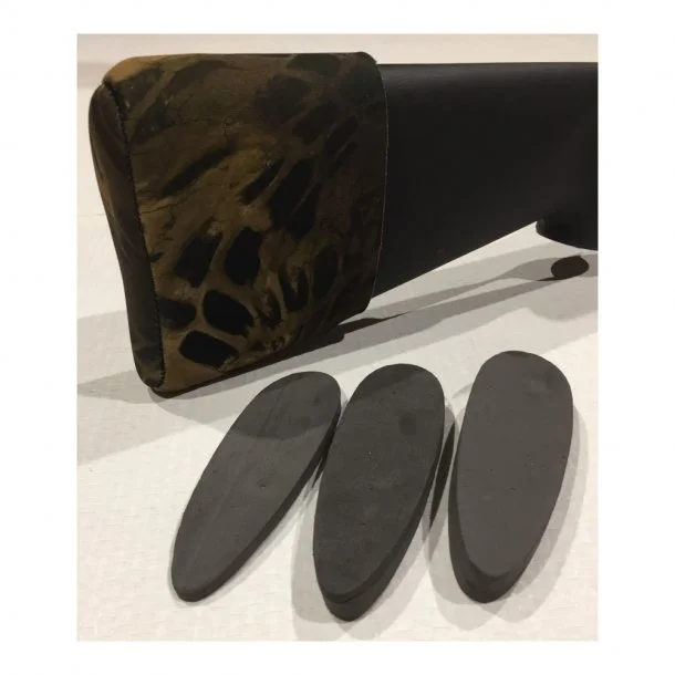 Kolbeforlænger i 5 mm strækbart neopren med laminerede syninger for ekstra holdbarhed. Kolbeforlængeren har tre forlængerindsatser.